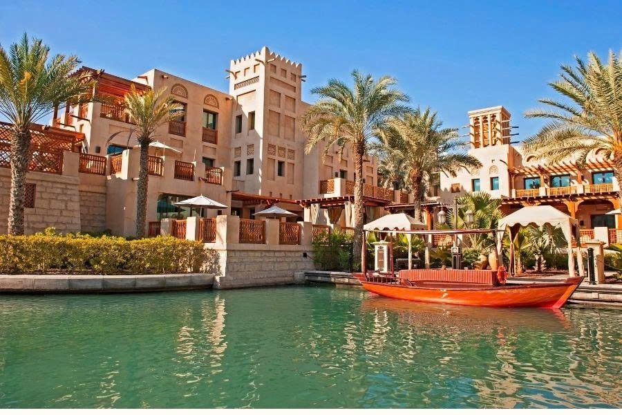 - Madinat souk Jumeirah - Check-in trước khách sạn 7 sao nổi tiếng Thế giới Burj Al Arab Nơi đây nằm trong khu quần thể khách sạn và giải trí đồ sộ, sang trọng. nhờ có những con kênh nhỏ nhắn, duyên dáng chạy khắp khu vực nên nơi đây còn được mệnh danh là “Venice thu nhỏ” của sa mạc.