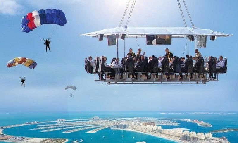 - Bữa tối trên không: Thưởng thức bữa tối lơ lửng ở độ cao cách mặt đất 50 mét với góc nhìn 360º toàn cảnh Dubai về đêm.