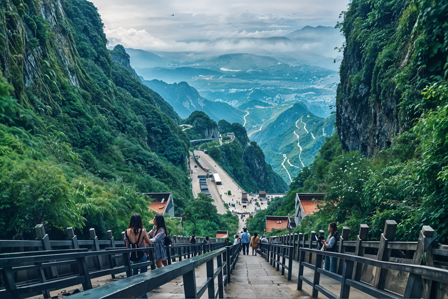 - Thiên Môn Sơn - (đã bao gồm cáp treo khứ hồi) – Nơi đây được mệnh danh là Núi Thần Tương Tây hay còn gọi là “Hồn của Vũ Lăng”. Quý khách sẽ được trải nghiệm cáp tuyến treo vượt núi dài nhất thế giới, thưởng thức phong cảnh đẹp như một bức tranh thủy mặc.