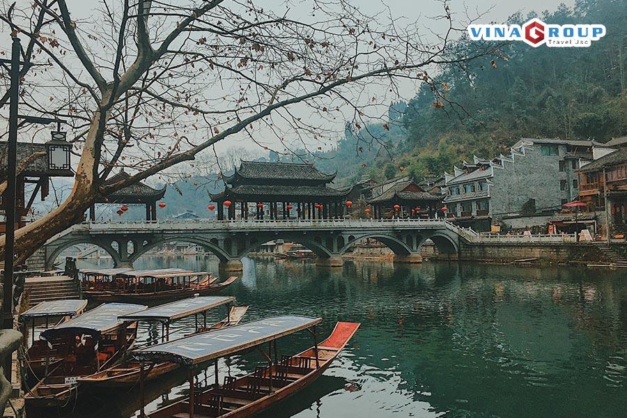 Sáng: Quý khách dùng bữa sáng tại khách sạn và làm thủ tục trả phòng. Xe đưa Đoàn khởi hành đến Phượng Hoàng Cổ Trấn.