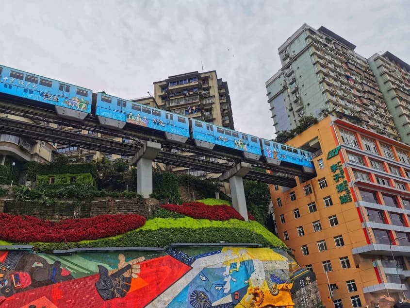 - Ga tàu điện Lý Tử Bá (Liziba) - nơi đoàn tàu điện ngầm chạy xuyên qua tòa nhà cao tầng, là điểm nhấn kiến trúc đặc sắc hiếm thấy tại Trùng Khánh. Dù trông như gắn liền với tòa nhà, nhưng thực tế ga tàu và công trình dân cư này được thiết kế hoàn toàn tách biệt.