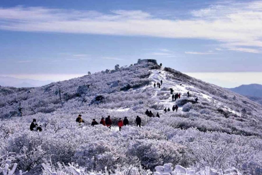 - Mùa xuân (tháng 3 đến tháng 5): thời tiết ấm áp với nắng dịu nhẹ, không mưa và hơi lạnh vào buổi tối. Đây là thời điểm người Hàn đi du xuân và tham gia nhiều lễ hội hoa: Hallasan, Sobaeksan, Jirisan và Taebaeksan.