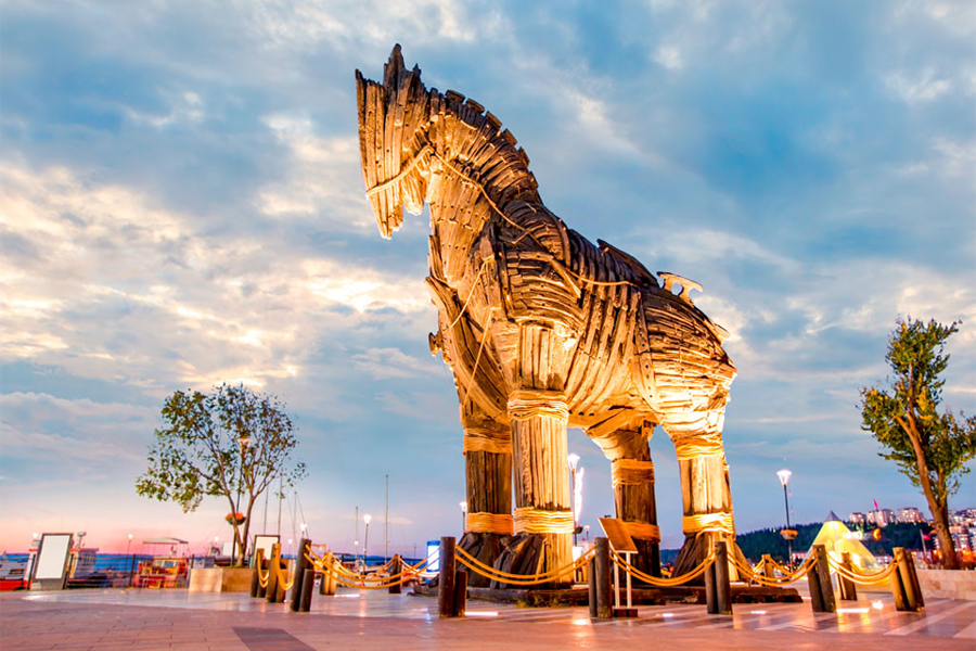 • Sau đó đoàn tiếp tục tham quan thành cổ Troy, nơi này gắn liền với hình ảnh nổi tiếng là “Con Ngựa Troy” và bản anh hùng ca về Cuộc chiến Thành Troy trường kỳ. Tại đây, quý khách tham quan Troy Museum, nơi tái hiện nền văn minh cổ đại từng được ca ngợi trong sử thi Iliad. Đặc biệt, đoàn sẽ tận mắt chiêm ngưỡng con ngựa thành Troy nguyên bản – biểu tượng nổi tiếng được UNESCO công nhận, và có thể leo lên tham quan bên trong thân ngựa qua hệ thống cầu thang. (Đã bao gồm vé Troy Museum). (Bao gồm vé tham quan Troy Museum)