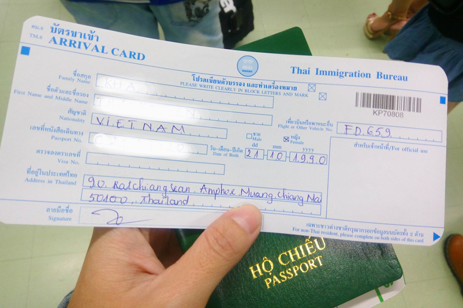 Khi nhập cảnh tại Thái bạn cần điền đầy đủ thông tin vào tờ khai