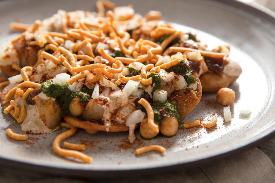 Một món ăn vặt thập cẩm tuyệt nhất ở Ấn Độ mà bạn không thể bỏ qua đó là Papri chaat. Bánh quế giòn (papri) được sử dụng làm đế, bao phủ phía trên gồm cà chua, hạt đậu, chaat masala, sữa chua, me, sốt tương ớt xoài, hạt lựu và sev, hay bột mỳ rán.