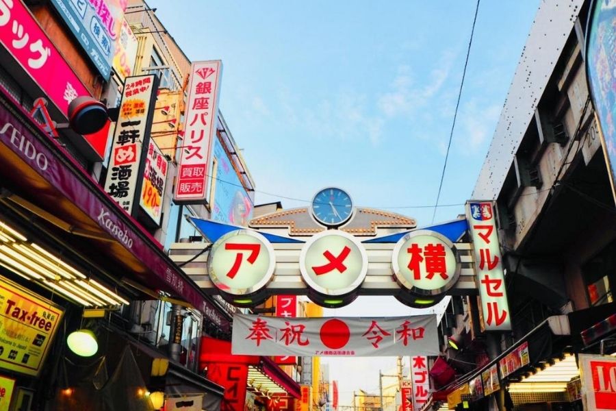 Phố Ameyoko nằm ở Ueno gần công viên Ueno, đây là địa điểm tuyệt vời để du khách săn hàng giá rẻ. Bạn có thể tìm thấy quần áo, mỹ phẩm, đồ dùng, matcha tự làm và nhiều thứ khác ở chợ Ameyoko.