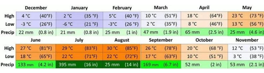 - Mùa hè Hàn Quốc (tháng 6 - tháng 8): trời bắt đầu nóng lên, nhiệt độ dao động từ 18-30 độ C, trời oi bức và thường xuất hiện những cơn mưa lớn.