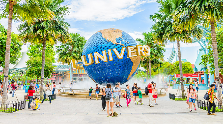- Chụp hình với biểu tượng Universal Studios Singapore