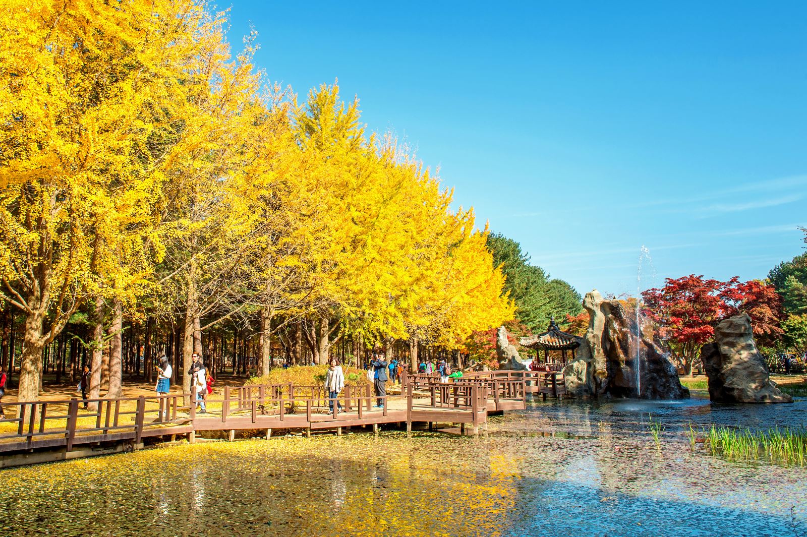 Đảo Nami là một điểm đến tuyệt vời khác để ngắm lá đỏ vào mùa thu. Khi vào thu, những hàng cây ngân hạnh và Metasequoia trên đảo bắt đầu thay lá, tạo nên một bức tranh thiên nhiên rực rỡ với màu vàng, cam, và đỏ.