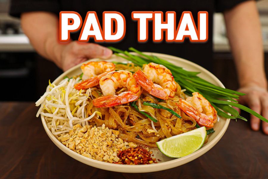 Món mì xào với tôm, trứng, đậu phộng, rau cải và mì sợi dẹt. Pad Thai có vị ngọt, mặn và chua nhẹ, được nêm nếm với các loại gia vị đặc trưng như nước mắm, đường thốt nốt, me chua và ớt. Pad Thai là món ăn đường phố phổ biến ở Thái Lan và được du khách yêu thích bởi hương vị thơm ngon và giá cả phải chăng.