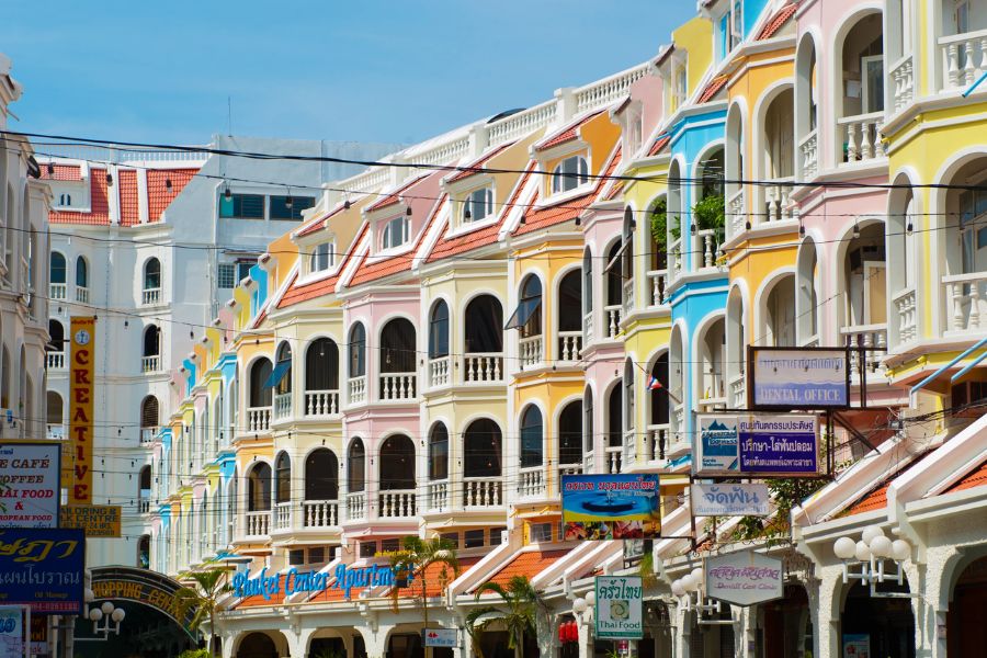 Phuket Old Town được biết đến với những tòa nhà Sino-Portuguese đầy màu sắc, kết hợp hài hòa giữa kiến trúc Trung Hoa và Bồ Đào Nha. Những ngôi nhà cổ kính này, được xây dựng từ thế kỷ 19 và 20, là minh chứng cho lịch sử giao thương lâu đời của Phuket với các nước phương Tây.
