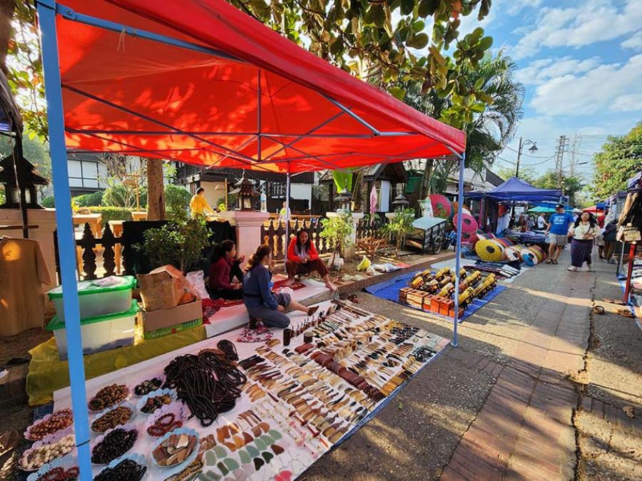 - Tham quan và mua sắm đặt sản địa phương ở chợ Sáng Phousi.
