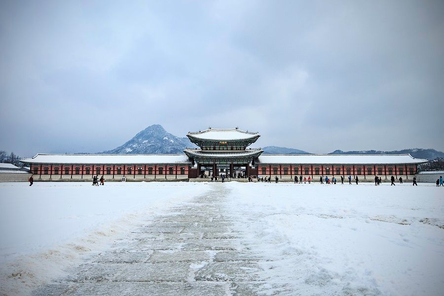 Mùa đông tại cung điện Gyeongbokgung là quang cảnh đẹp tuyệt diệu, được ví như tranh thủy mặc bởi kiến trúc đặc sắc cùng nhiều nét chấm phá đặc biệt mà hiếm nơi nào có được.