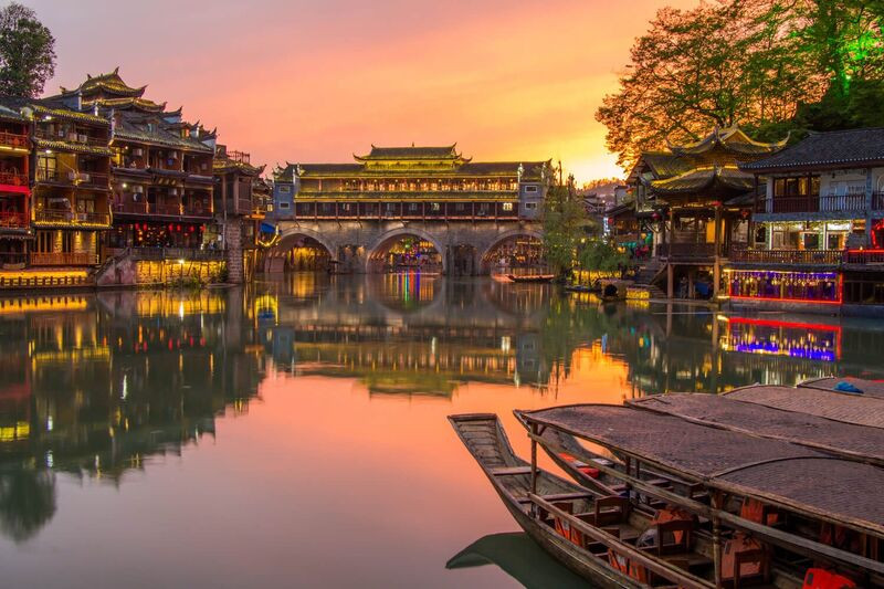 - Phượng Hoàng Cổ Trấn: được ví như "chốn bồng lai giữa nhân gian", nằm yên bình bên dòng sông Đà Giang thơ mộng. Với lịch sử hơn một nghìn năm, nơi đây đã gìn giữ được những nét đẹp cổ kính, văn hóa đa dạng và thiên nhiên hữu tình, trở thành một trong những cổ trấn đẹp và nổi tiếng nhất Trung Quốc.