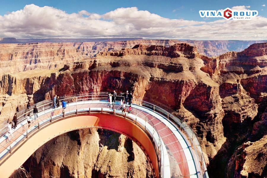 Đoàn tiếp tục khởi hành đến Grand Canyon West Rim, nổi tiếng với vực núi sâu và rộng được sông Colorado bào mòn qua hàng triệu năm. Tại đây, đoàn dùng bữa trưa với ẩm thực bản địa Hualapai và tham quan các điểm nổi bật: Eagle Point, Guano Point, Hualapai Point. Quý khách có thể đăng ký tour trực thăng ngắm Grand Canyon từ trên cao (chi phí tự túc) để trải nghiệm toàn cảnh hùng vĩ của kỳ quan thiên nhiên này.